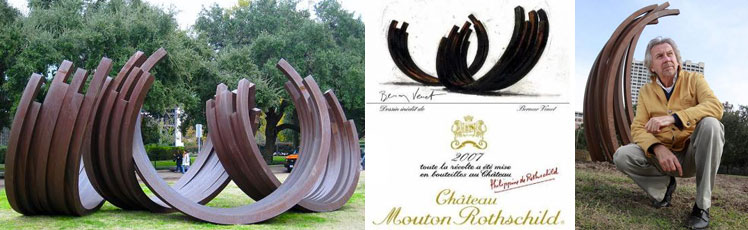 2007年木桐酒標原畫由現年68歲的法國雕刻家、畫家伯納·維內特(bernar venet)先生繪作。此畫似一個鼓起的桶,同時猶如一對根植于大地,正開放著等待承接稀世珍釀的葡萄酒杯。維內特先生是受木桐莊主菲利普·羅斯柴爾德女男爵(Baroness Philippine de Rothschild)的委托為木桐酒莊07年份酒標繪作的,根據慣例,他將獲得數箱該年份木桐酒作為回報。