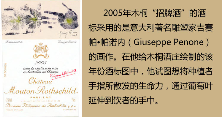 法文Mouton,原意是指“羊”,酒莊原是“羊莊”(酒莊所在地原來是給牧羊人放羊的山坡)。“武當(dāng)王”、“武當(dāng)”和“木桐”都是其音譯過來的叫法,其中屬“木桐”最為接近。這里用木桐,有幾重意義:一是木桐與法文發(fā)音近似,不容易造成費(fèi)解。二是在中國文化里,梧桐是吉祥的象征。中國有句老話說,“沒有梧桐樹,召不來金鳳凰”。可見有了梧桐,金鳳凰便來了。木桐的歷史確實(shí)證明是召來了金鳳凰。三是對葡萄酒愛好者來說,酒的名字吉祥,無論是自飲、送禮還是收藏在手中都是件愉悅的事。像木桐這種收藏級的頂級酒,會隨收藏時(shí)間的延長而增值,也是召到金鳳凰了。