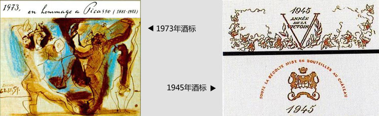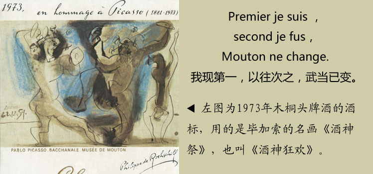 對于木桐酒莊來說,1973年是一個特別值得慶祝的年份,他們從1855年以來的二級酒莊被破例晉升為一級酒莊,從此與拉斐、拉圖、瑪歌、奧比安并稱“波爾多五大頂級酒莊”。經畢加索的女兒授權,1973年份的木桐酒標用上了畢加索的名畫《酒神狂歡圖》。雖然這一年份的酒質一般,但卻隨著畢加索的酒標而成為流芳百世的藏品。這一年的木桐堡紅酒在一次拍賣會上竟然拍出了7萬英鎊的天價。