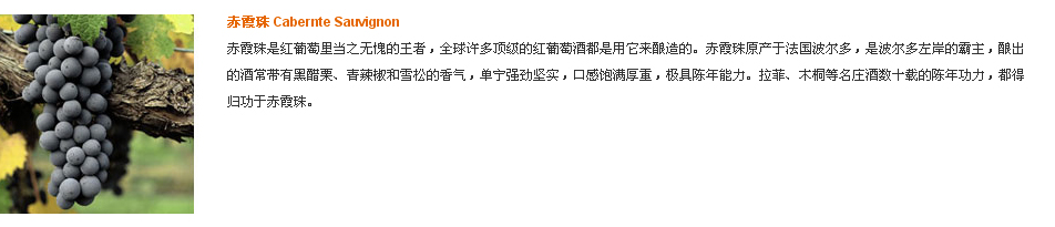 木桐紅葡萄酒以赤霞珠葡萄為主,根據年份不同,加入不同比例的品麗珠,梅樂和味而多。木桐紅酒具有典型的赤霞珠特征,成熟的黑加侖子果味,咖啡,烤木香氣,單寧味十分勁道,需在瓶中陳年7——15年方可以引用,是世界頂級收藏酒之一。木桐堡不同年份的酒都具有熟美的黑色漿果香,豐滿的口感,經典的煙熏氣,形成非常獨特的‘木桐香氣’,令人一聞便知是是木桐酒。