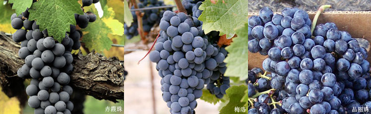 赤霞珠(Cabernet Sauvignon):又名解百納、加本力蘇維翁、卡本妮蘇維翁,原產法國波爾多。早在古羅馬時代(公元23~79年)就有栽培它的記載,當時稱之為“Biturigiaca”。赤霞珠是世界上最受歡迎的紅色釀酒葡萄。世界上許多高品質的紅葡萄酒都是用它來釀造的。由于它適合多種氣候類型,已于世界各地普遍種植,并呈現出不同的風味。