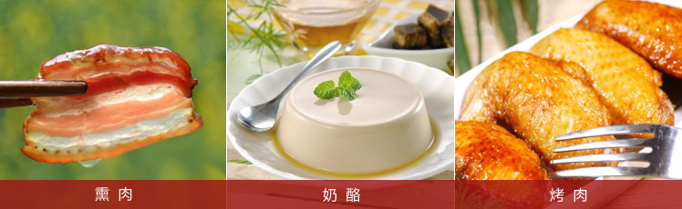 濃郁食物:宜配單寧強勁的紅葡萄酒,比如拉朗德男爵紅葡萄酒、馬嘉龍紅葡萄酒。
