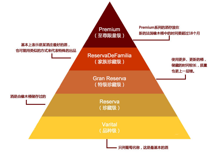 Reserva:珍藏級,酒是由橡木桶儲存過的,比上面的酒好。