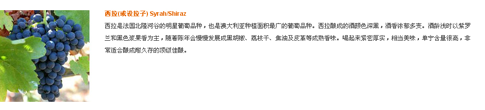 香氣非常濃郁奔 放。帶有明顯的黑色漿果,紅醋栗和橡木的香氣,配有雪茄殼,雪松,肉桂等馨香