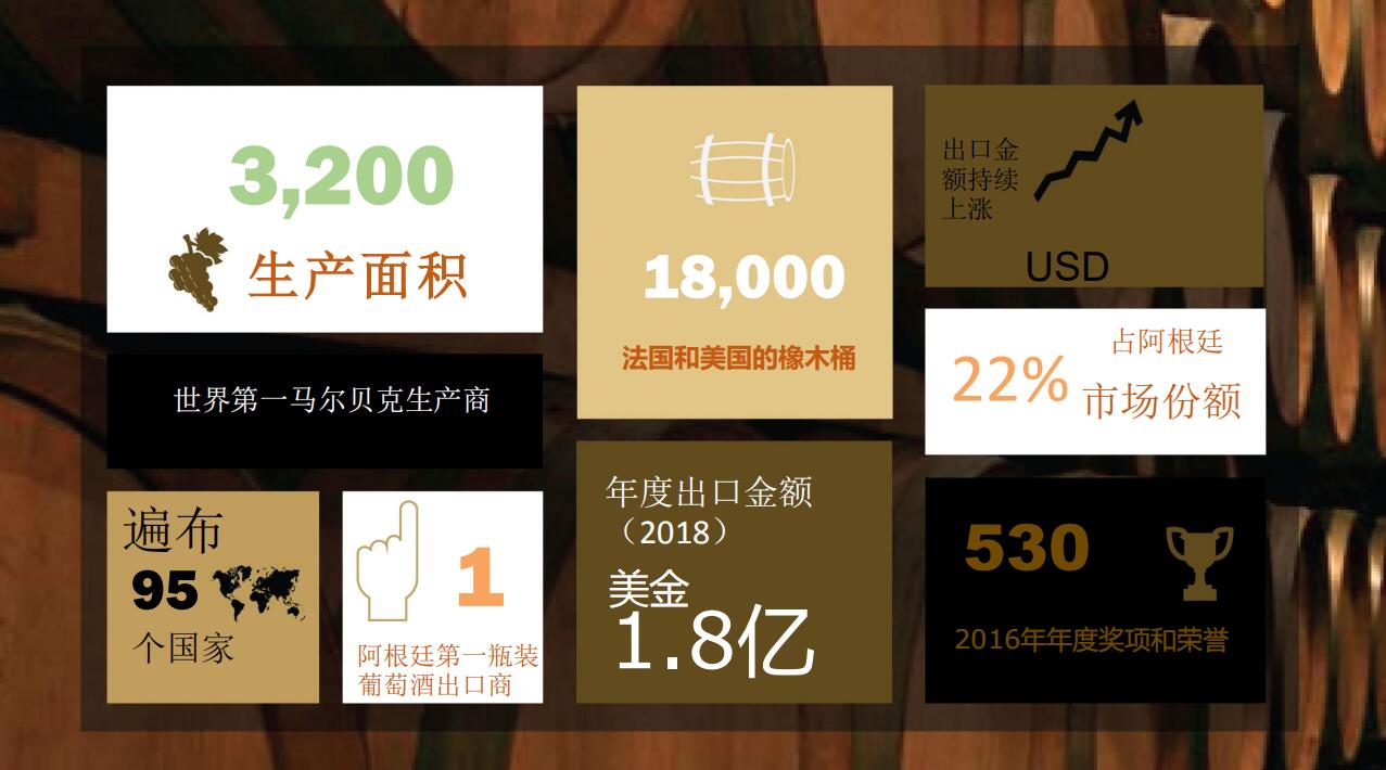 MALBEC是一種紅葡萄的名稱。用這種葡萄釀制的酒在阿根廷屬于高檔酒,釀酒所選用的葡萄都是當(dāng)年新采摘的。酒的顏色呈寶石紅,氣味芳香。具體指標(biāo)為:酒精度為12.8;糖度為每升1.5克;酸度為5.00;食用的最佳溫度為15-18度。