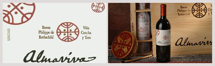我們知道酒標(biāo)對于木桐酒莊來說具有極其重要的意義,木桐莊每年都請著名畫家作畫為標(biāo),其中就包括畢加索。這款新誕生的“酒王”的名字也頗費(fèi)周折,最后,男爵決定以法國著名喜劇作家博馬舍(Beaumarchais)《費(fèi)加洛婚禮》中的人物“阿瑪維瓦公爵”(Count of Almaviva)為名,該劇因莫扎特將其改編為歌劇而揚(yáng)名天下;而酒標(biāo)圖案則采用智利古代象征宇宙天地的圖騰,這個(gè)標(biāo)志是馬普切文明(Mapuche civilization)時(shí)人們幻想地球和宇宙的樣子,這個(gè)設(shè)計(jì)最初出現(xiàn)在馬普切人進(jìn)行重大儀式的鼓上面。同樣,為了給這款葡萄酒的質(zhì)量作背書,兩位酒王也在酒標(biāo)上簽上自己的名字。