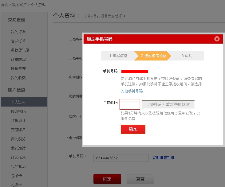 (3) 收到短信校驗碼后,填入校驗碼點馬上驗證手機即可;