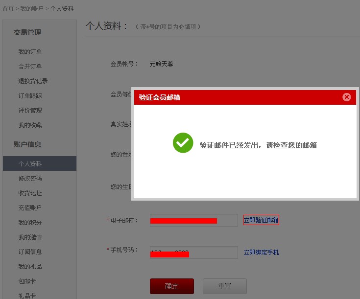 為什么要完成手機與郵箱驗證?1.確保您的帳戶安全;2.確保您能享受到更周到、更周全的服務,例:及時準確地接收到訂單處理通知郵件等~